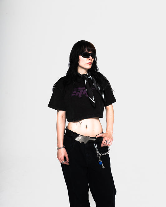 CLASSIC LOGO BOXY FIT CROP TEE - BLACK