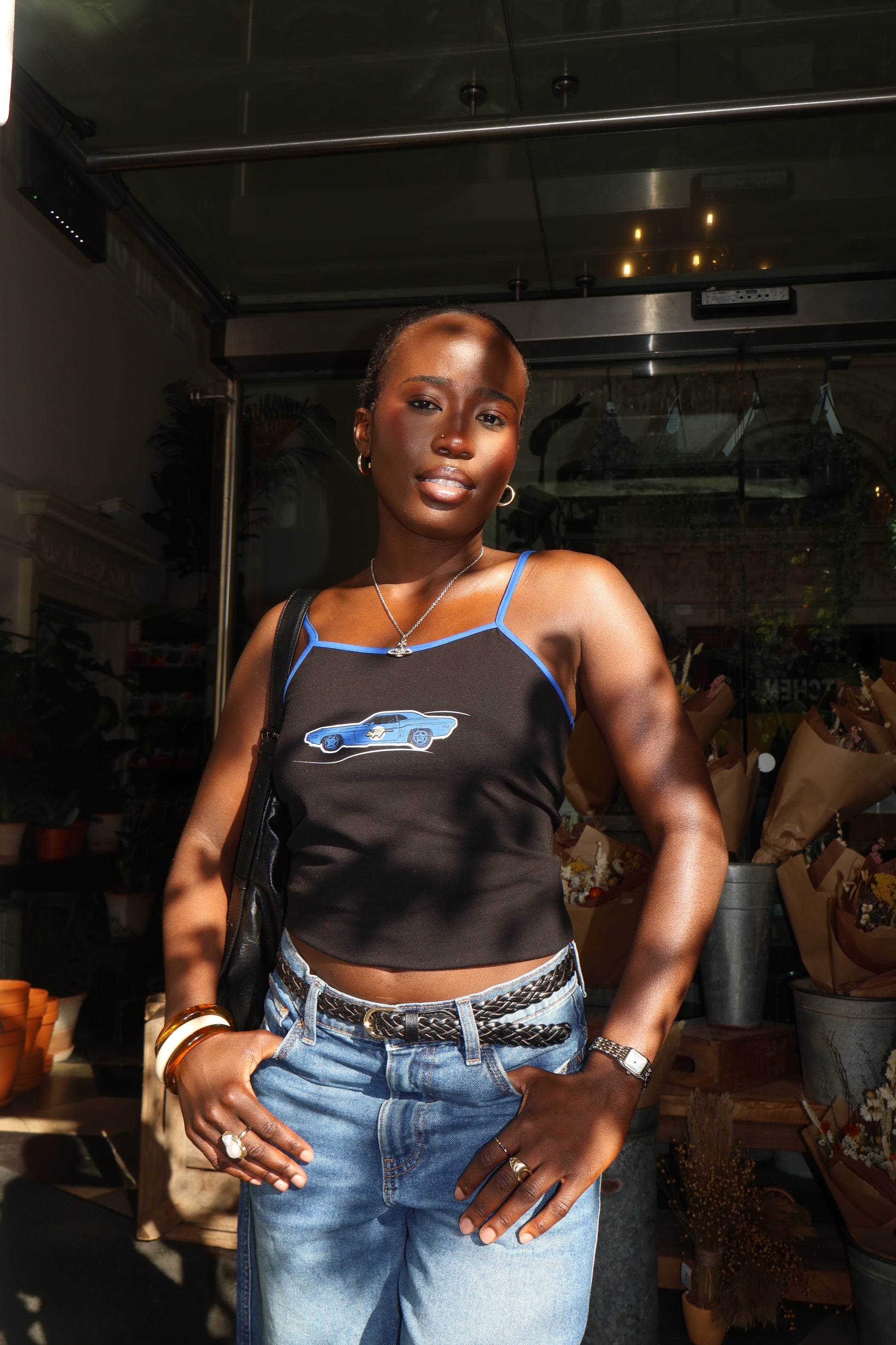 Trackside Tank, A sleek Pit Girl, inspired tank top Crafted in soft stretch cotton . Comes in black and blue